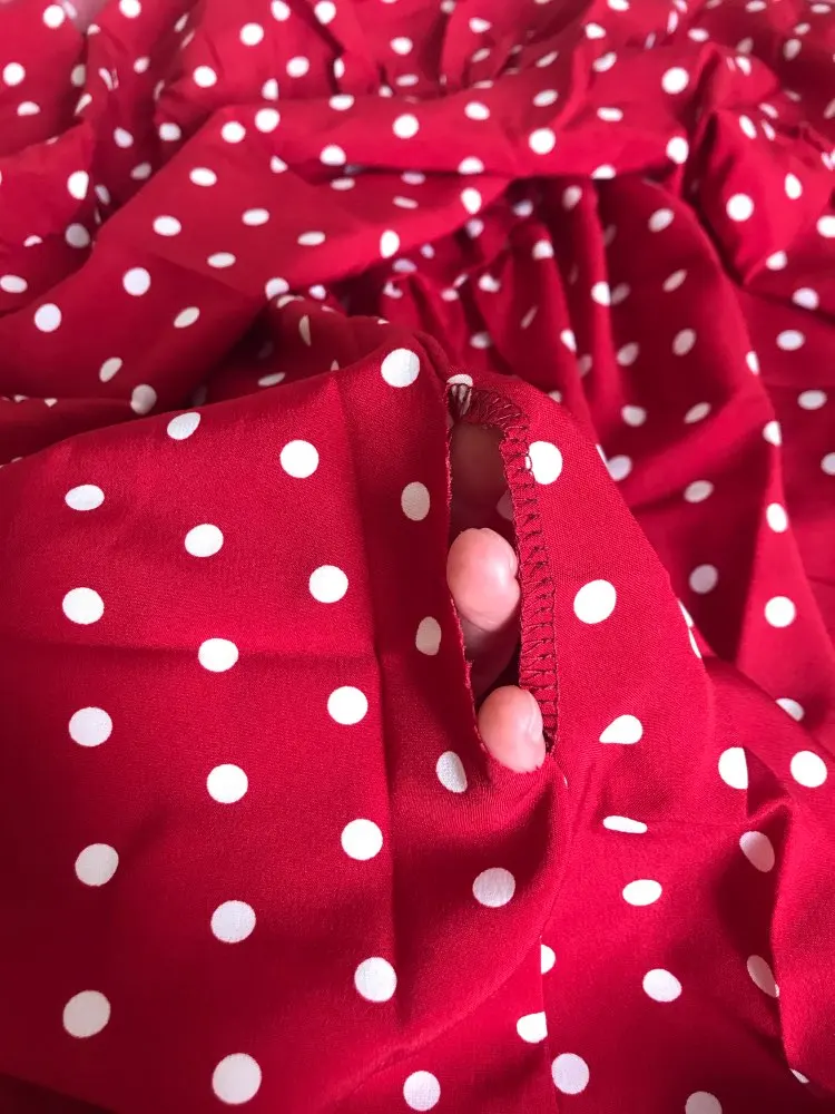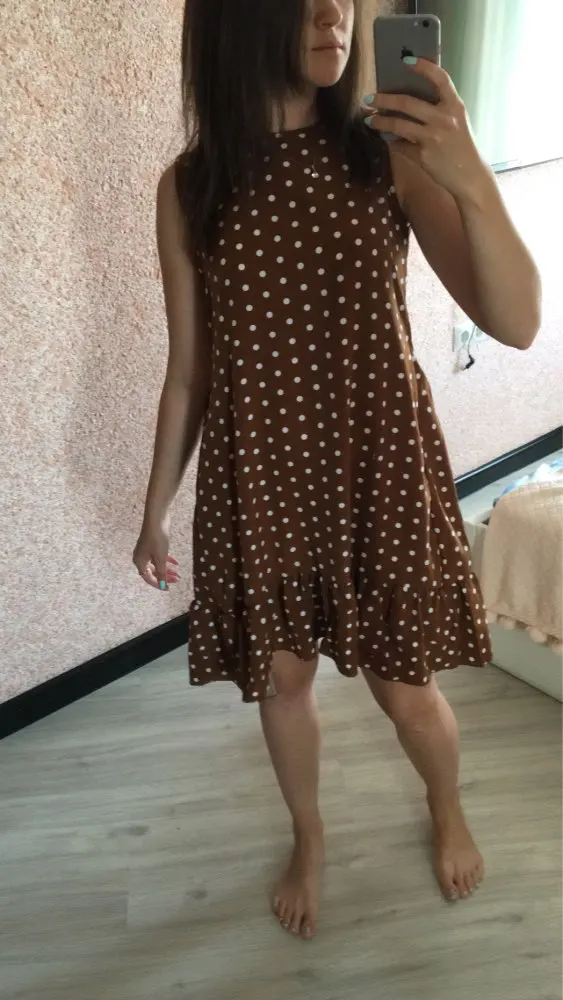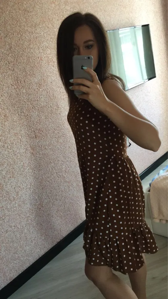 Nice dress. The fabric is synthetic, but not nasty, pleasant to the body. The parcel came instantly, it was only 8 days. Chose AliExpress standard shipping, received at the cash desk in the supermarket Pyaterochka. The seller sent the parcel literally a few hours after the order. Thank you to everyone who writes reviews with their measurements, managed to choose the perfect size. At 90-80-104 took S, perfectly suited. Even the armhole does not press. Not very different, very satisfied.
